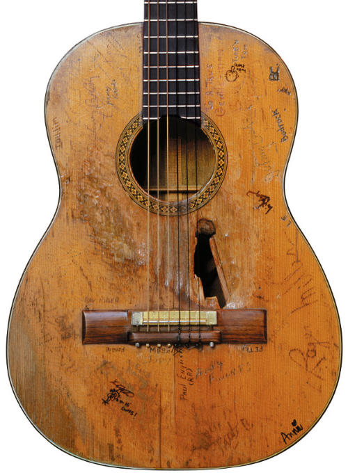 Willie Nelson’s legendary acoustic guitar ‘Trigger’ appears to have a few stories to tell