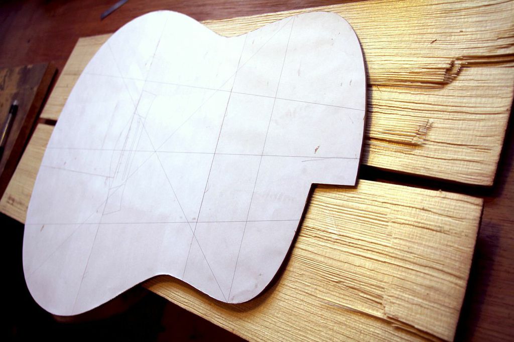 And marks up our flamed maple ready for cutting, bookmatching and gluing …