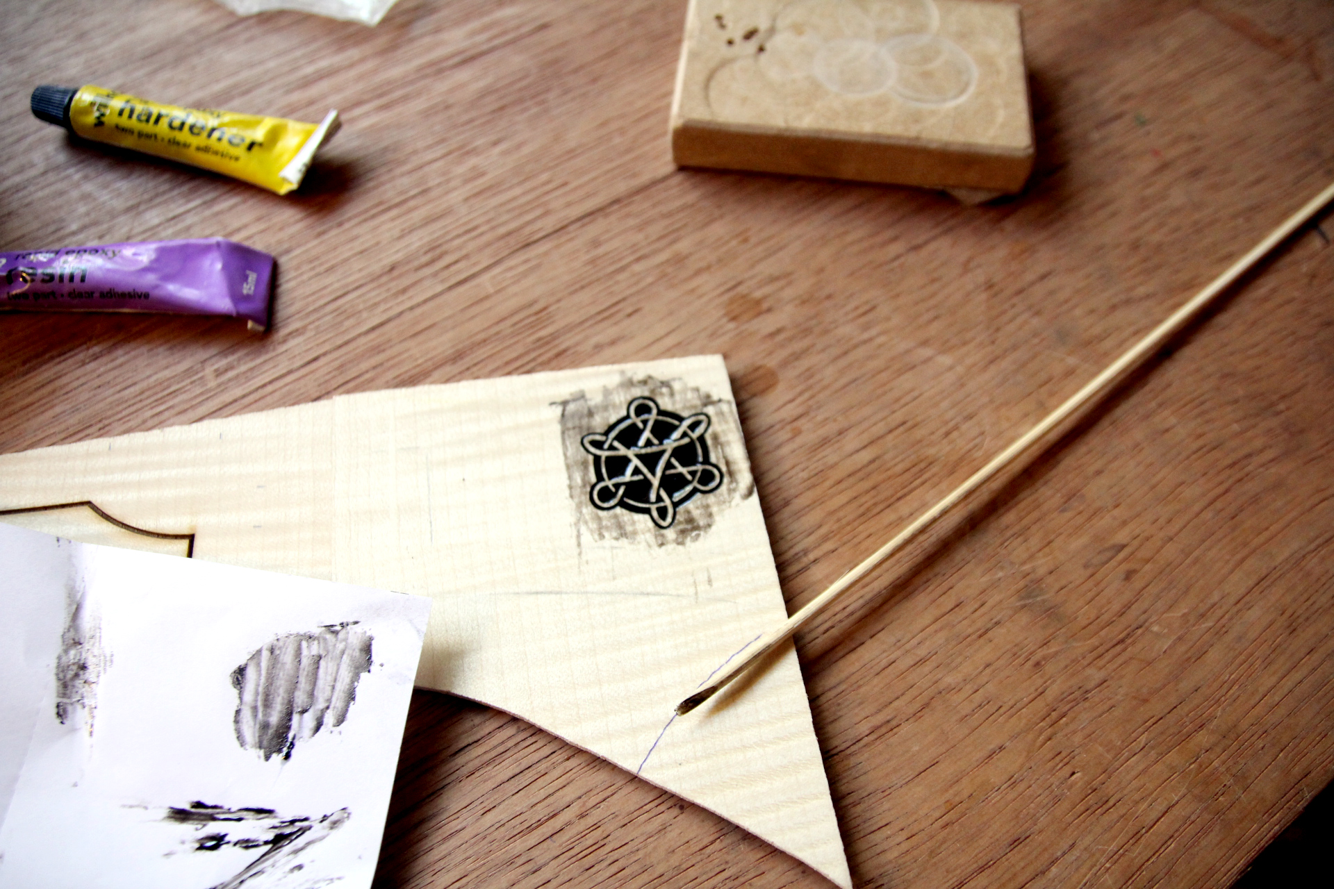 We pass on our etched maple to Nick who attaches it to the neck which is now taking its final shape.