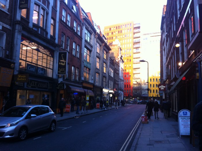 Carolan has been down to The Smoke for a couple of days to see the sights and meet up with session guitarist Kevin Armstrong. The sights included a trip to meet the curators at the Victoria and Albert Museum, a research seminar at Imperial College and of course, a visit to Denmark Street, very much the spiritual home of British Guitar playing since the 1950s and known as Britain’s Tin Pan Alley. We drop in at Macari’s where we chat with owner Anthony about guitars and where a passing customer from Columbia takes an interest and plays us a few tunes. We think that we might even have been invited to a Columbian music festival.