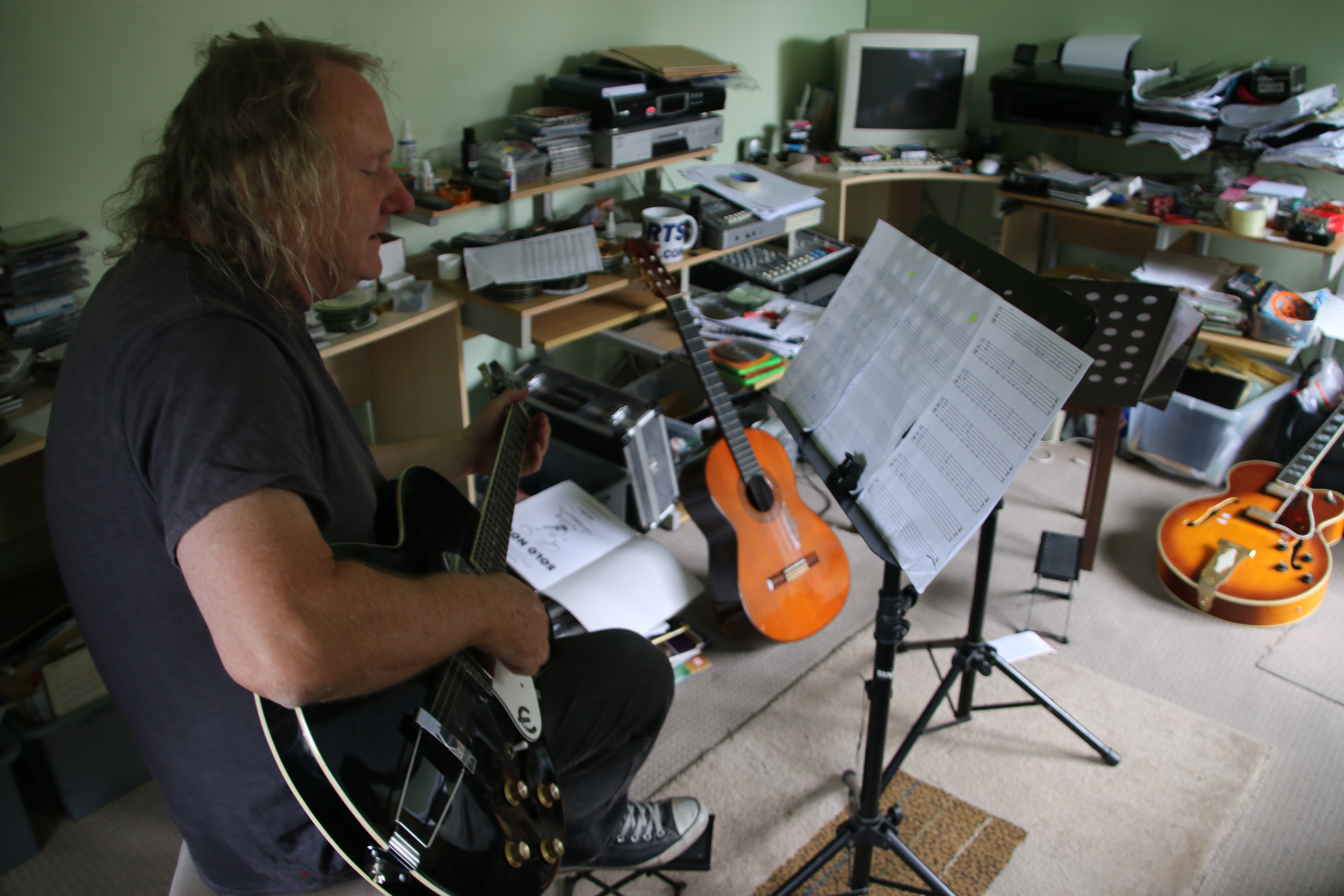 Carolan has been to stay with Mark Rouncefield, a researcher and guitar player from Lancaster. In his professional life Mark is an ethnographer who is well known for his naturalistic studies of how computers are actually used in real-world settings. At home, he invests considerable time into learning the guitar, including regular lessons with his teacher Willy Fluss. Carolan spends a week with Mark, after which we sit down to discuss guitars, the blues and the lifelong journey of learning to play …