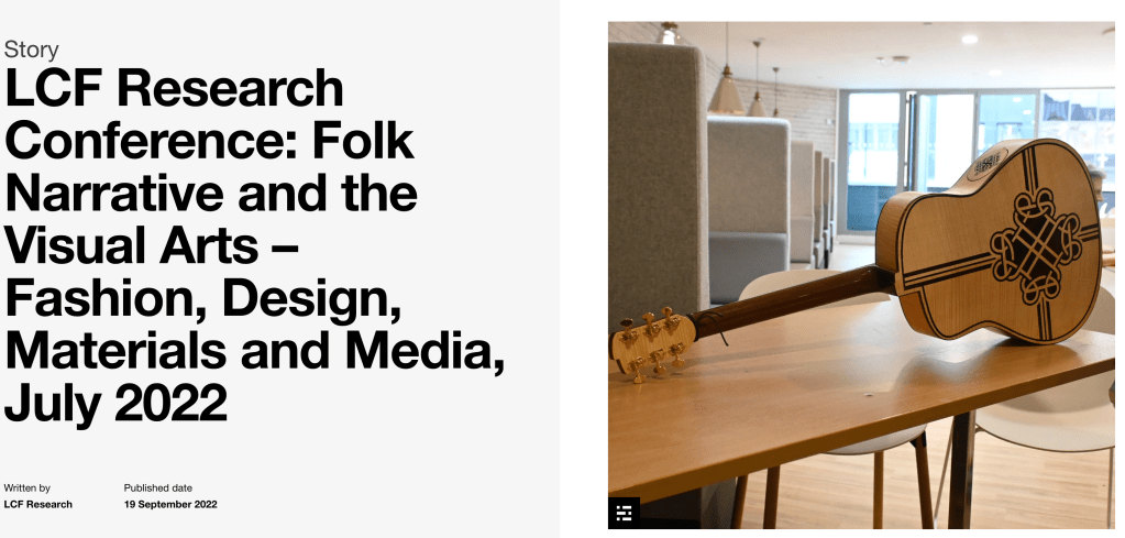 Carolan has been to another conference. This time it was the “Folk Narrative and the Visual Arts: Fashion, Design, Materials and Media” conference hosted at the London College of Fashion.
